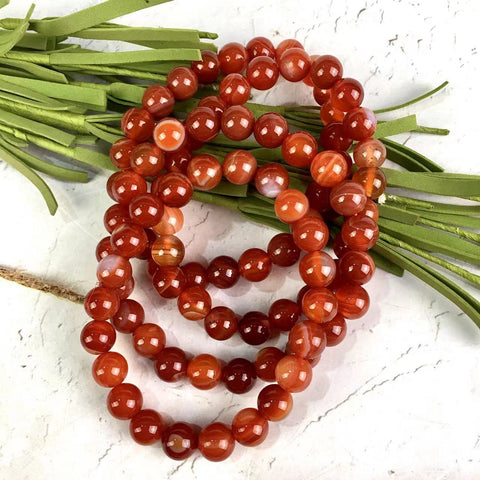 10MM Healing Bracelet Natural Gemstone Red Stripe Agate Bead Bracelet for Men and Women