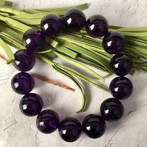 15.5MM Natural Amethyst Crystal Energy Stone Elastic Stretchable Amethyst Beads Bracelet