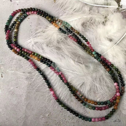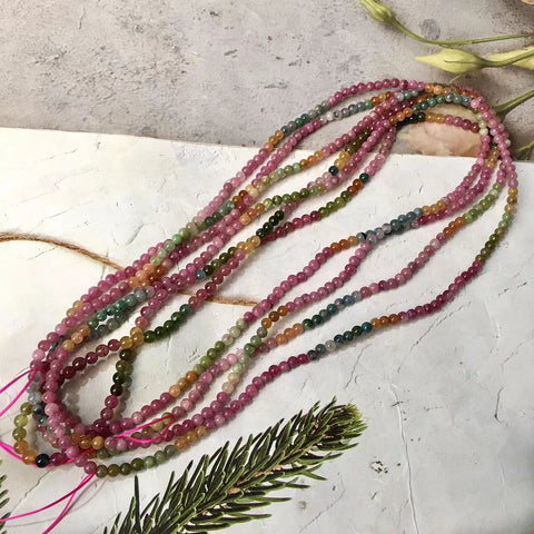 4 and 5MM Watermelon Tourmaline Gemstone Natural Stone Beads Mutil turn Bracelets with Silver Plated Clasp Bracelet for Women Men Girls Healing