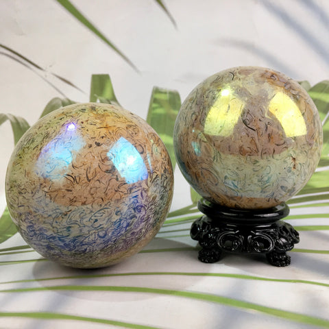 Wholesale high quality reiki natural Aura fossil Healing stone sphere ($29/kg) for decoraiotion1kg