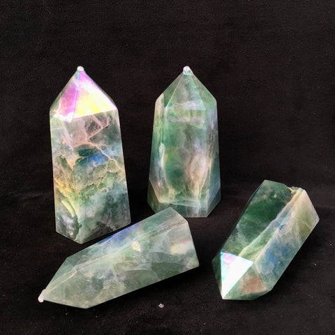 Wholesale high quality reiki natural Aura green fluorite Healing stone tower for decoraiotion 1kg