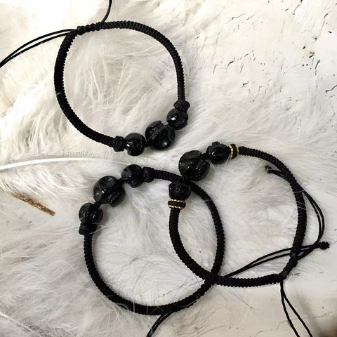Black obsidian skulls Hand braided rope bracelets wholesale gemstone carving Crystal