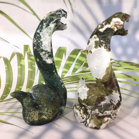 High quality wholesale Hand carved Natural Crystal moss agate snake For Decoration