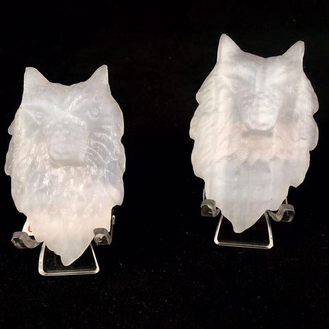 High quality wholesale Natural Crystal Selenite Wolf Head For Decoration