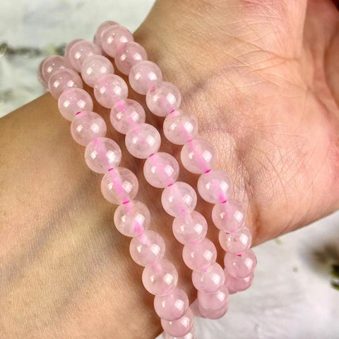 Natural 6.5mm Multi turn Rose Quartz Crystal Energy Stone Beads Elastic Stretchable Bracelet Healing Power