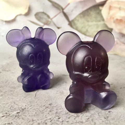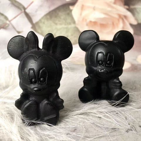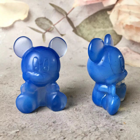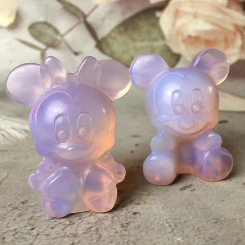 Natural crystal crafts obsidian and opal and fluroite and blue aventurine carving animal Mouse Mickey minnie mouse folk crafts for sale