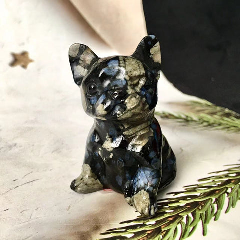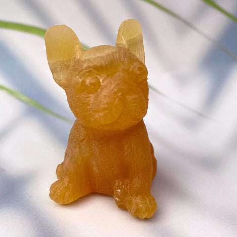 Natural Healing Crystal Animal French Bulldog Carving For Home Decoration