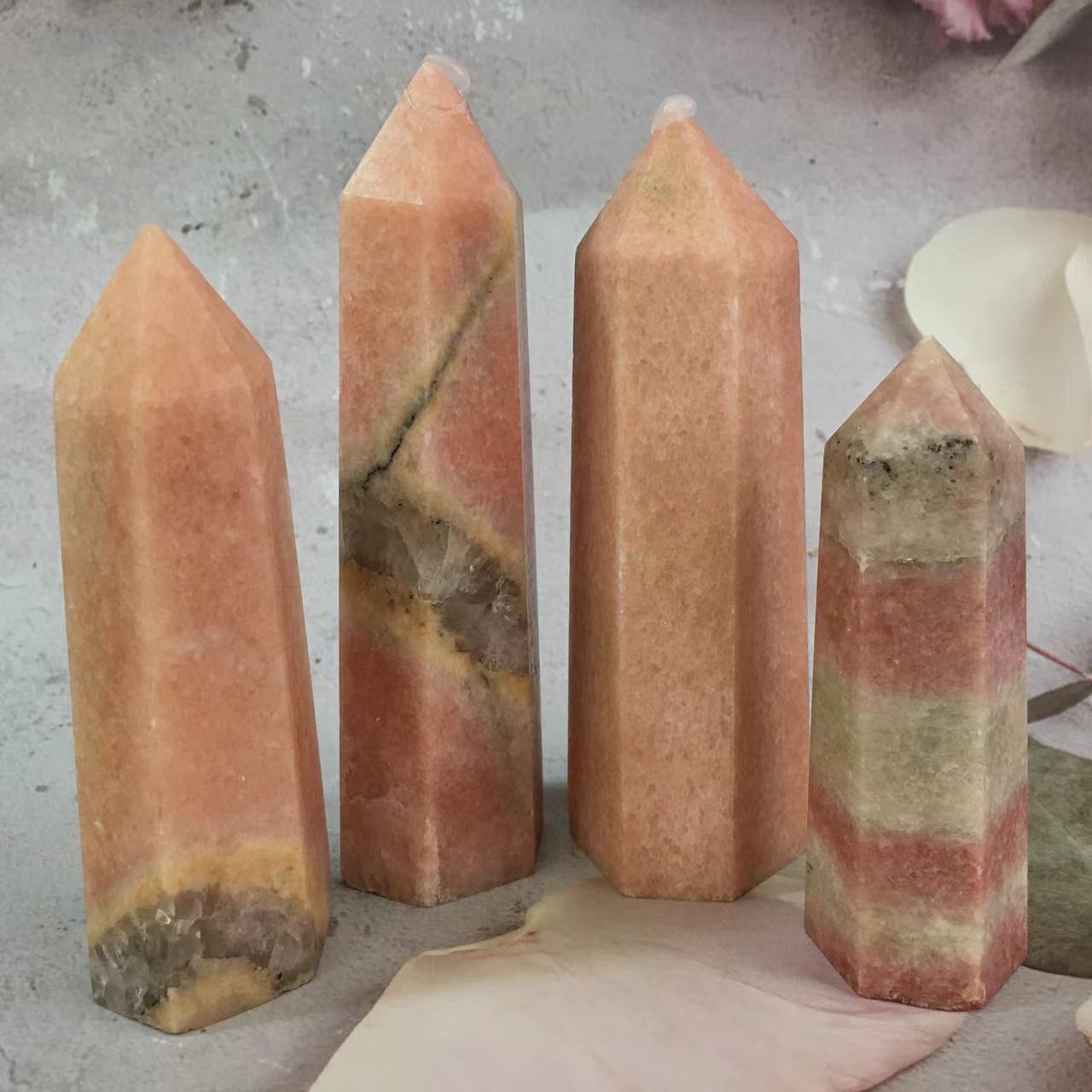 Wholesale high quality reiki natural crystal Peach morganite tower for decoraiotion 1kg