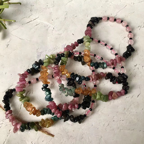 Watermelon Tourmaline Gemstone Natural Stone Beads Chips Bracelets