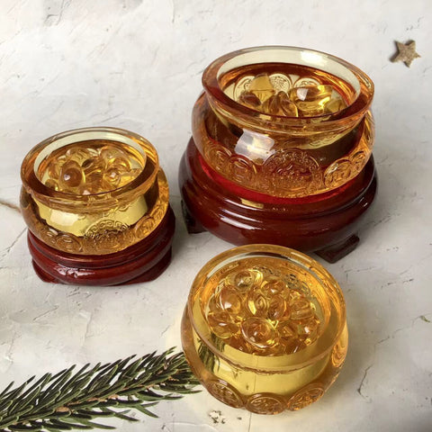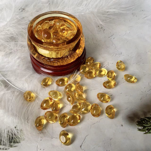 Wholesale Crystal Small Treasure Basin Bowl Ingot Yellow Glaze Cornucopia for Feng Shui Decoration