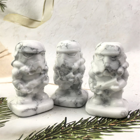 Wholesale Decoration Carving Crafts Howlite Storm Trooper Carving White Turquoise Stone