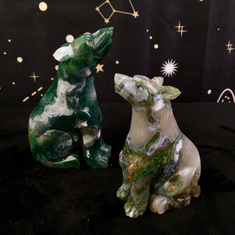Wholesale high quality reiki natural crystal moss agate wolf carving for decoraiotion
