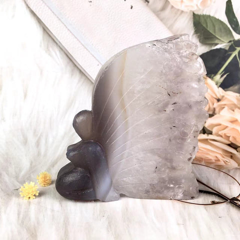 Wholesale high quality reiki natural crystal white quartz fairy carving for decoraiotion