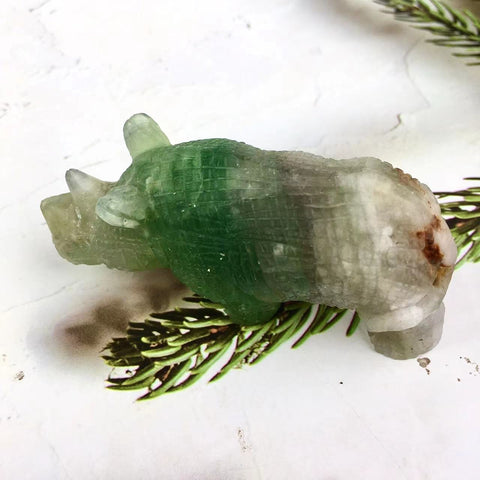 Wholesale Natural Crystal Carved Sculpture Caribbean calcite /fluorite Rhinoceros and Caribbean calcite penguin