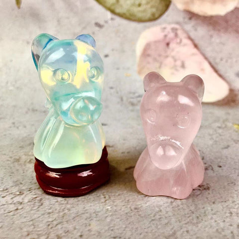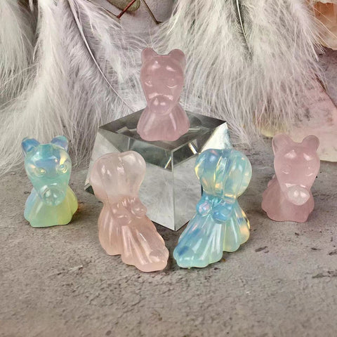 Wholesale natural crystal Rose quartz and Pink Opal carving Halloween Ghost Dog Crystal ghost zero dog