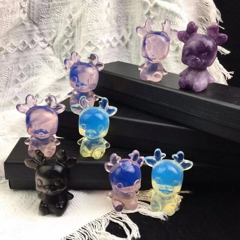 Wholesale Natural Different material Crystal Carving Animal Small Deer For Home Decoration