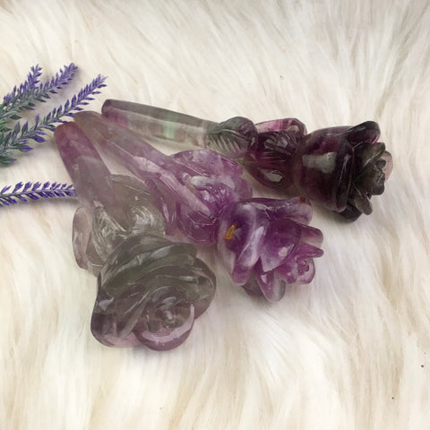 Wholesale natural purple fluorite rose truncheon specimen purple fluorite rose wand raw stone point feng shui quartz for decoraiotion