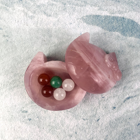 Wholesale natural quartz healing crystal cat bowl rose quartz crystal hello kitty bowl /storage box folk crafts