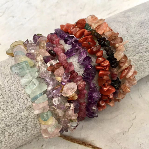 Women Colorful Chip Natural Stone Bracelets Healing Gravel Crystal Gemstone Bracelet For Madam Girls